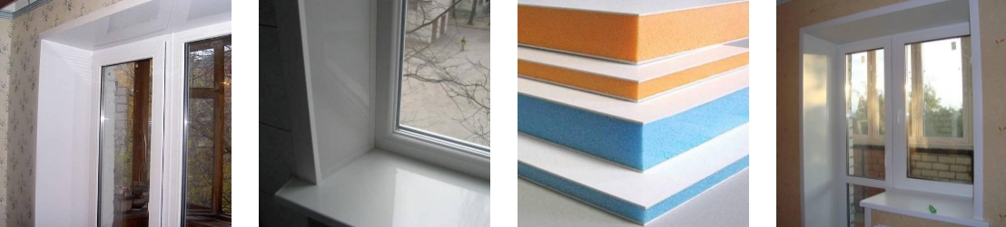 Укоси з сендвіч-панелей, найкращий і вигідний варіант з усіх можливих, вони забезпечують неперевершену звуко і теплоізоляцію, точно збігаються з кольоровим відтінком вікон, мають високу стійкість до механічних навантажень.